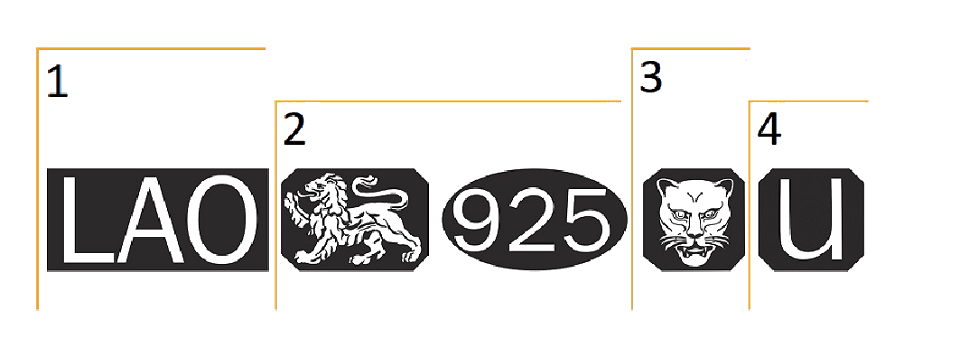 A complete hallmark consists of 3 compulsory marks. If an item has not been stamped or marked with these 3 markings then it has not been properly hallmarked. All 3 marks must be present.